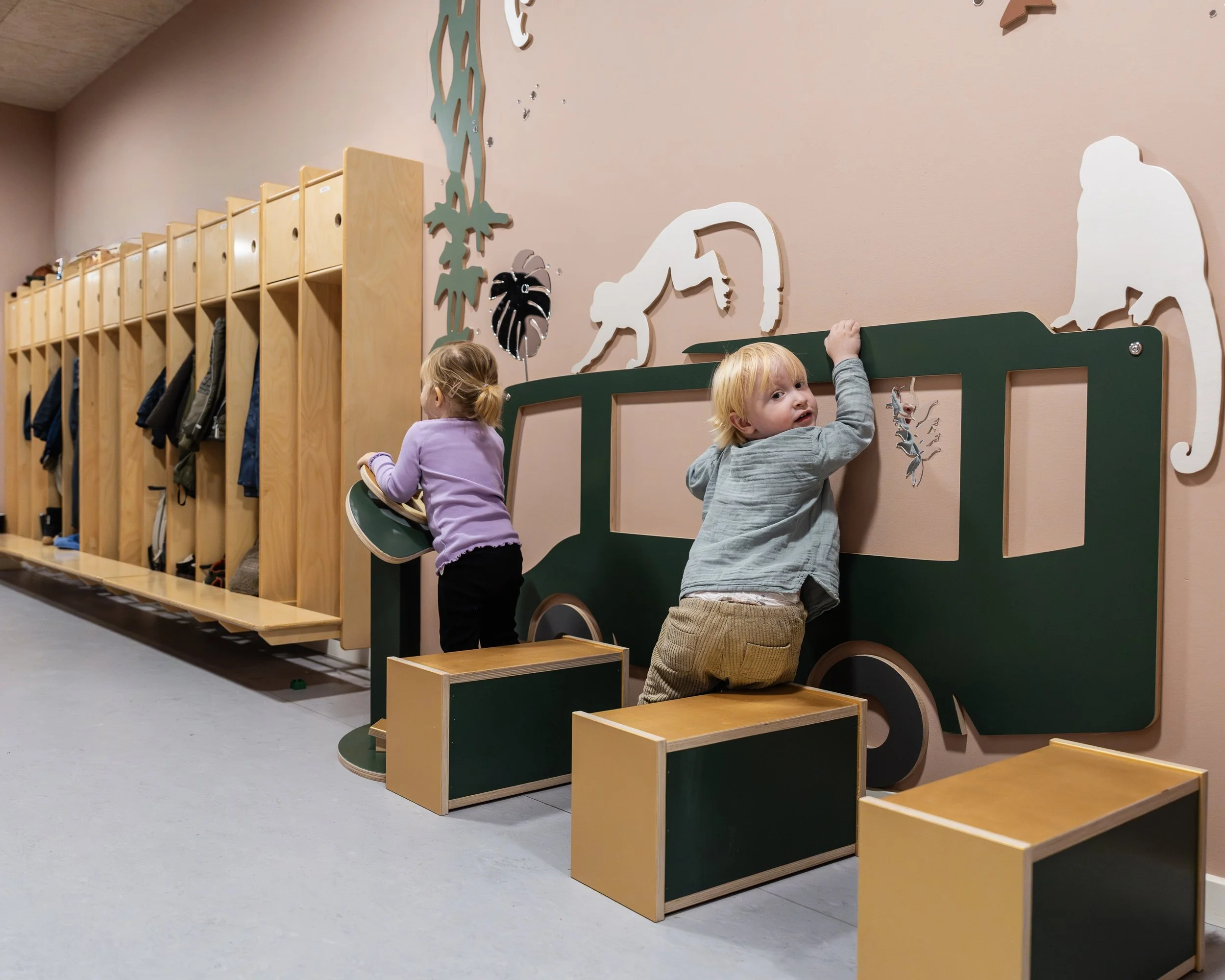 “Vi har oplevet et tæt og kreativt samarbejde, vores ønsker blev til virkelighed på den mest eventyrlige måde. Jungletemaet er gennemført med aber, flodheste og en junglebus, der inviterer til leg og fantasi.”